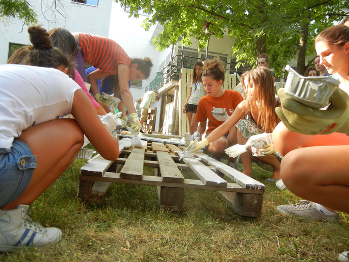 Shipping Pallet Art Space was a collaborative installation built during the 2012 AUK Summer Camp. Upcycled pallets were transformed into an experiential pathway leading into the campus cafeteria, where students displayed their own artwork. Invited to teach American art and culture, James Stodgel wove a design-build project into the program, engaging sixty boys and girls from across Kosovo. Together, they painted, assembled, and activated the structure—learning not only about art and architecture, but also about reuse, recycling, and living lightly on the earth.